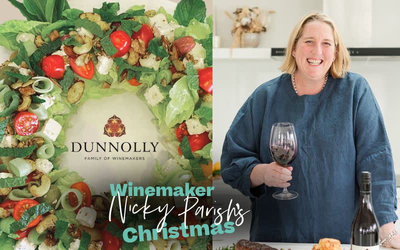 “Every year I make my festive salad wreath. It's a little cliché but feels so festive, and it doesn't feel like Christmas without it. I love to serve this alongside seared Beef fillet with potato gratin. I like to cook the beef on the BBQ, which gives the meat a gorgeous crust, adds a little smokiness, and keeps it tender and juicy. Of course, no Christmas menu is complete without wine. The Dunnolly Pinot Noir goes perfectly with this recipe.”